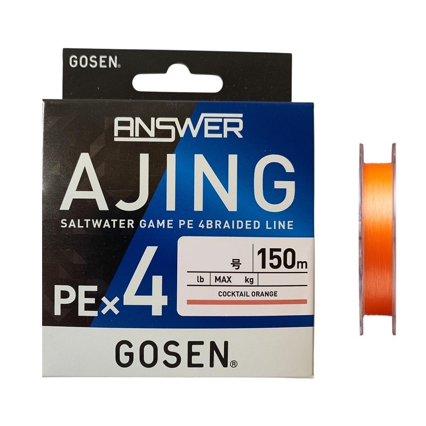 Gosen PE Answer Ajing,lrf balıkçılığı için üretilmiş 4x örgülü biriptir. Son derece yoğun 4 yüksek mukavemetli polietilen elyaftan yapılmıştır ve uzunluk boyunca mükemmel pürüzsüz ve yuvarlak bir ipliktir, halkalardan geçerken sürtünmeyi en aza indirir, bu da çok daha uzun atışlar sağlar. Mükemmel yuvarlak bir şekle ve ipeksi bir yüzeye sahiptir, bu da misinanın su sütununda yüksek batma hızı ile çok uzun atışlar sağlar. Mikro minnow ve hafif jiglerle LRF (hafif kaya balıkçılığı) ve HRF (sert kaya balıkçılığı) balıkçılığı için özel olarak tasarlanmıştır ve bu balıkçılık stilleri için en iyi polietilen ipliklerinden biridir. Gosen tarafından icat edilen SG üretim süreci minimum esneme ve çok yüksek hassasiyet sunar. Yüzeyin pürüzsüzlüğü ve elyafın dokusu ve kendisi uzun bir kullanım süresi boyunca özelliklerini korur.