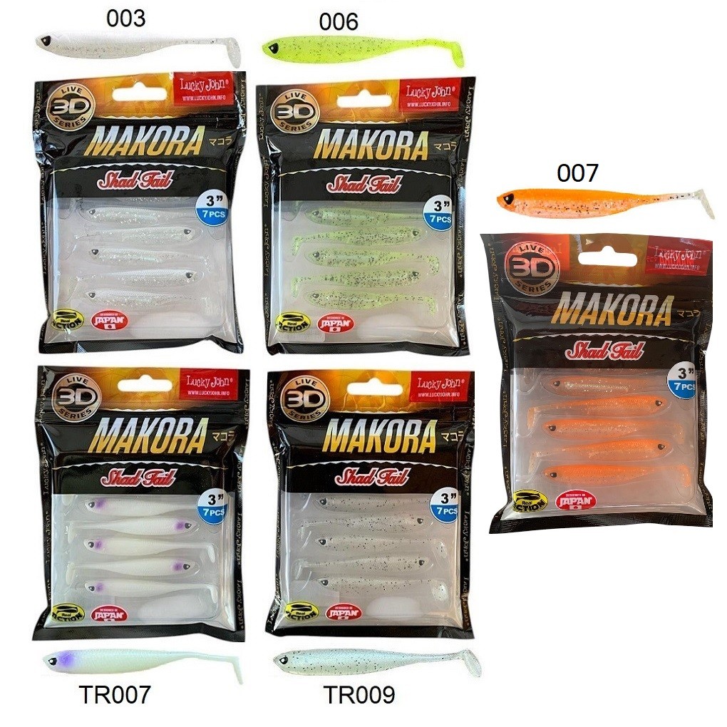 3D canlı çizgilere sahip Makora serisi görünüm, aksiyon ve çok yönlü kullanım açısından dişli balık avcıları için en iyi seçeneklerden biri. Serinin dizaynının sunmuş olduğu canlı ve gerçekçi görüntü çok uzaktaki balıkların dahi dikkatini çekecek. Tüm Lucky John silikon yemlerde olduğu gibi Makora 3D serisi de Lucky John esans muhafaza ve yayılım sistemi ile güçlendirilmiştir. Doğal esans sayesinde balıklar ya iğnenizde ya da iğneninizin yakınlarında olacak. Hem yaralı hem de sağlam bir balığın kuyruk aksiyonunu gerçekçi bir şekilde sunmayı başarmaktadır. Makora 3D serisi en üst kalite PVC yumuşak plastik materyalden üretilmiş ve ancak maket balıklarda görebileceğiniz derecede gerçekçi detaylara sahip.
