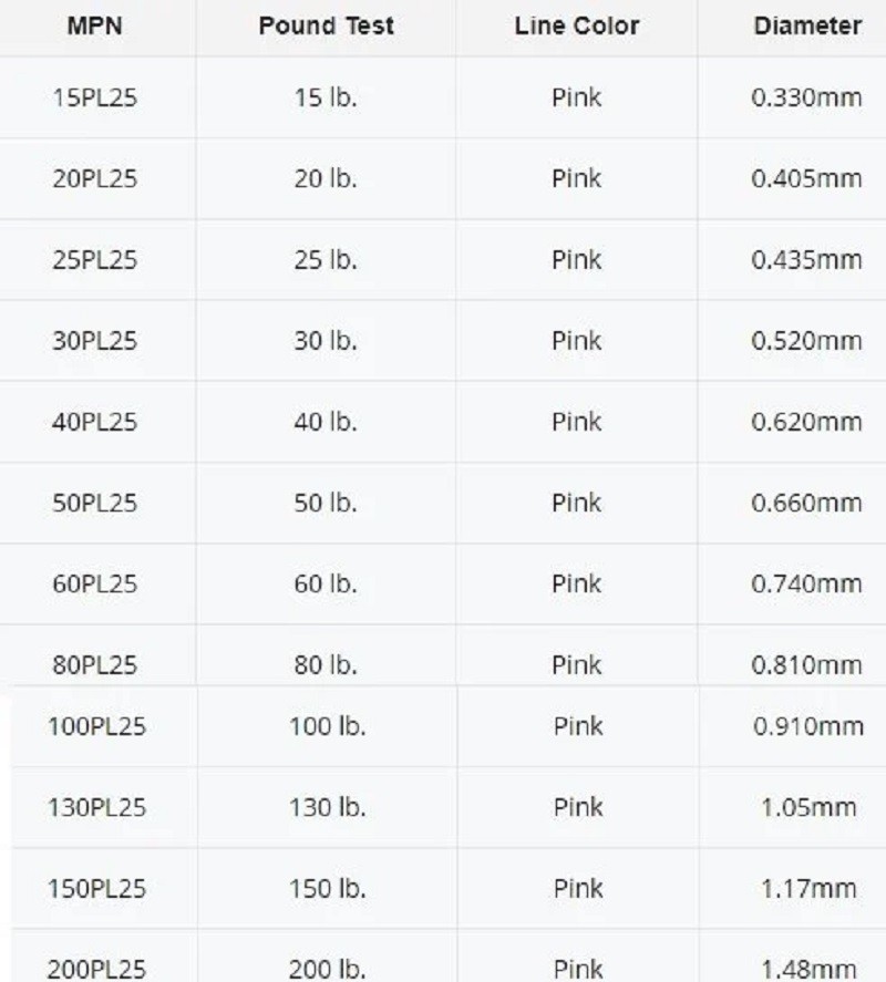 Daha iyi görünürlük ve daha iyi kontrol için pembe misina, minimum esneme ve mükemmel aşınma direnci ve mukavemete sahip.